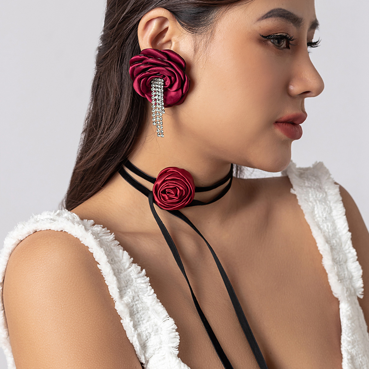 Product information:Treatment Process: Electroplating Color: 02 necklace White 5711,02 necklace wine red 5711,02 necklace black 5711 Applicable population: Female Chain style: clavicle chain Material: Rhinestone
