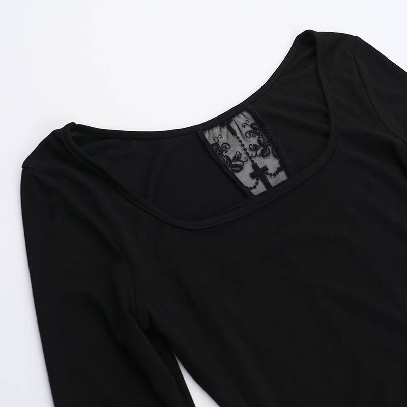 Product information: Pattern: Cross Color: Black Size: S,M,L Style: slim fit Style: pullover Sleeve type: regular sleeve Main fabric composition: Polyester (polyester fiber) Sleeve length: long sleeve