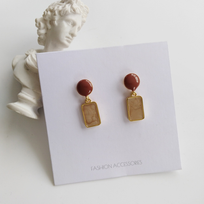 Geometric Design Drop Oil Contrast Color Short Earrings