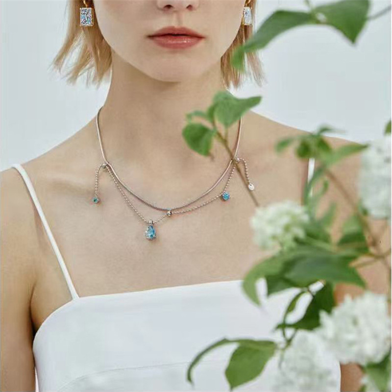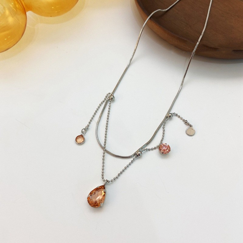 Color Crystal Drop Free Pull Gem Necklace