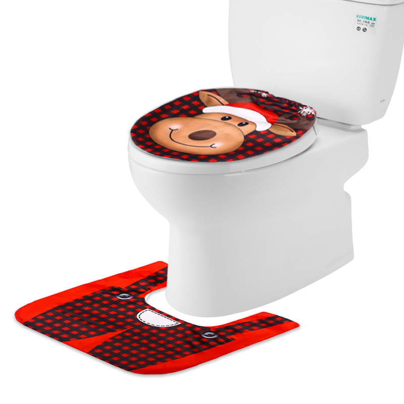 Color: A style glasses toilet set for the elderly, B style cartoon toilet set for the elderly, C style cartoon snowman toilet set, D style cartoon elk toilet set