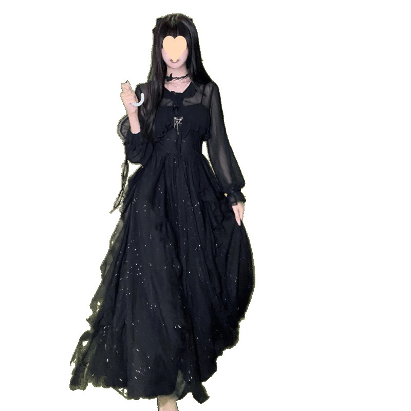Color: star suspender skirt cardigan suit, star suspender skirt one piece, black cardigan one piece