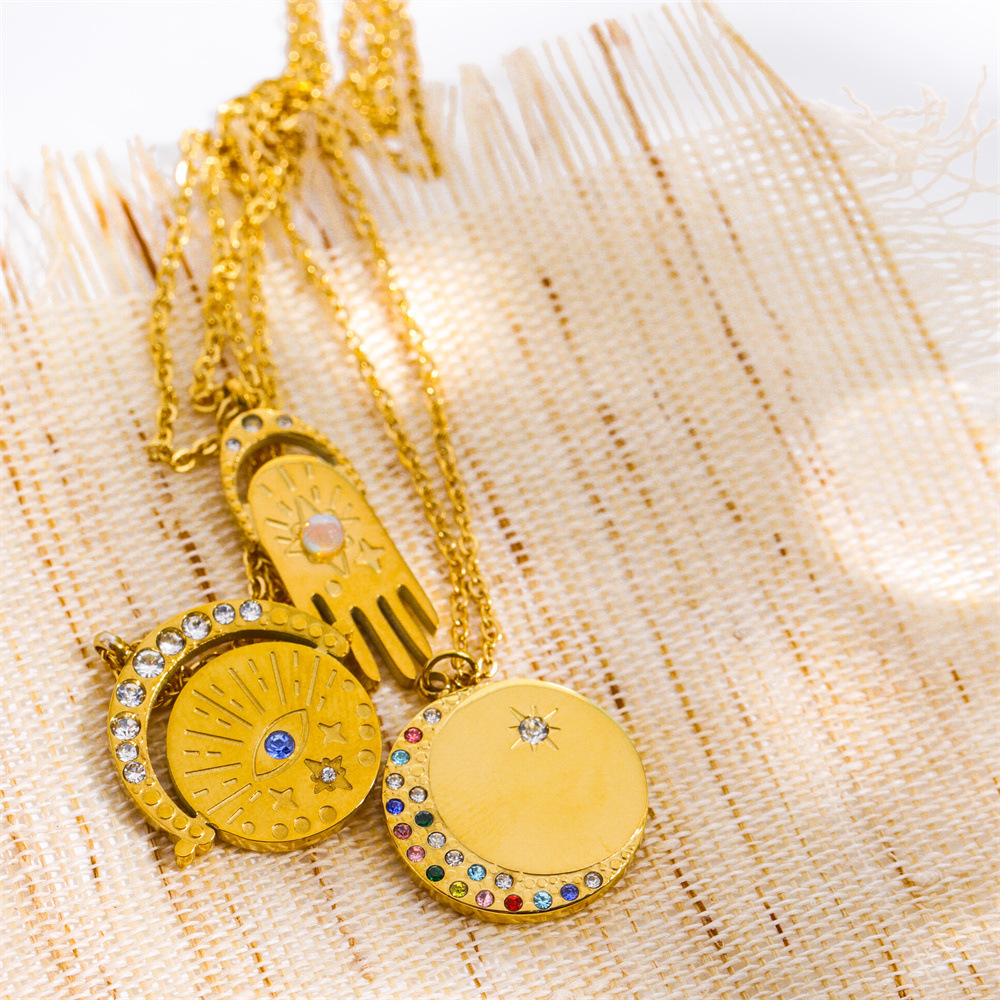 Product information:Color: Hamsahand, Devil's Eye with diamonds, XINGX with diamonds Chain style: O-ring chain Material: Stainless steel Shape: Geometry