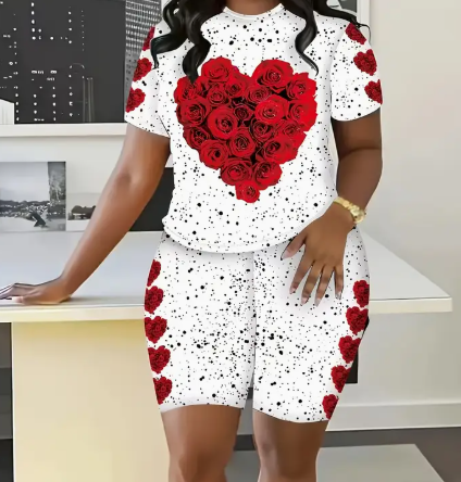 Women'S Two-Piece Set Featuring A Stylish Printed T-Shirt And Casual Shorts
