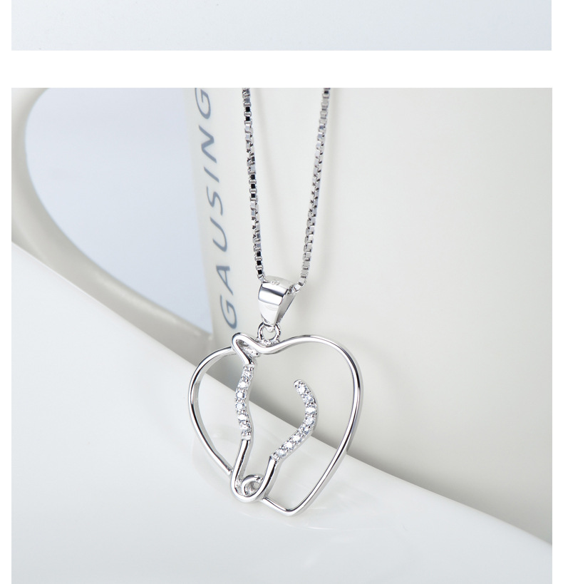 S925 Sterling Silver Jewelry Heart Shaped Horse Head Pendant Micro Diamond Necklace