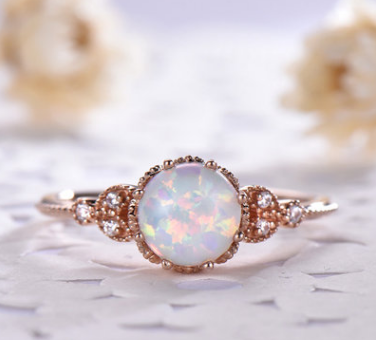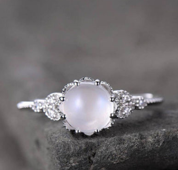 Moonstone Diamond Ring Rose Gold White Opal Engagement Ring