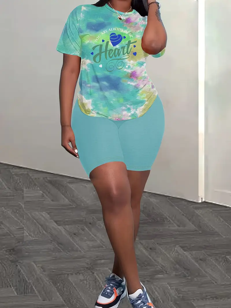 Women'S Two-Piece Set Featuring A Stylish Printed T-Shirt And Casual Shorts