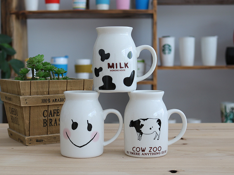 Material: CeramicCapacity: 301mL (inclusive)-400mL (inclusive)Style: KoreanPopular elements: small freshColor classification: Cows, black spots, smiley faces