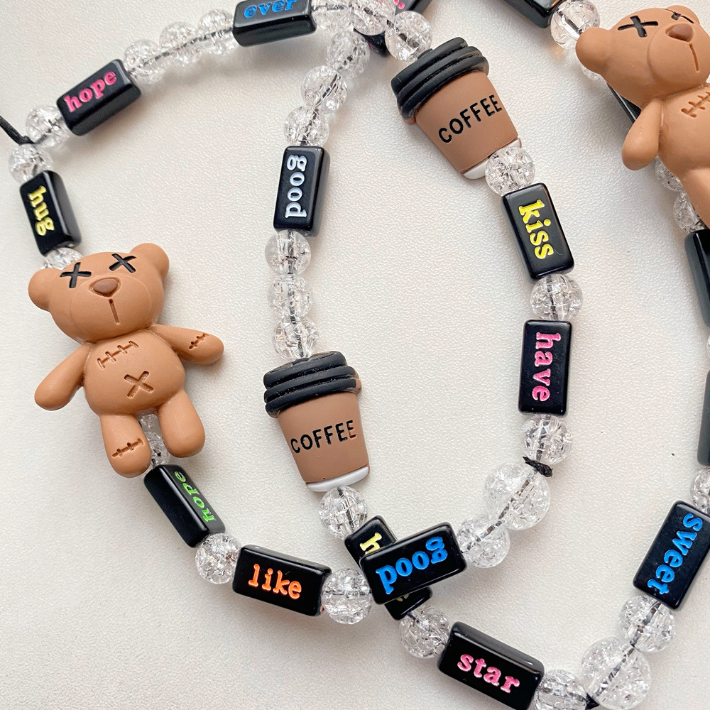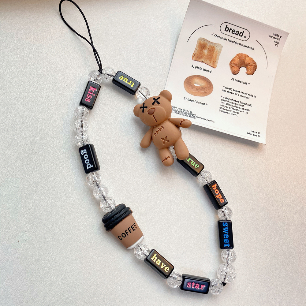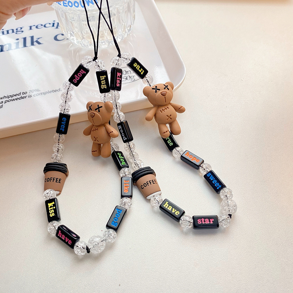 Creative Cartoon Bear Beaded Mobile Phone Lanyard