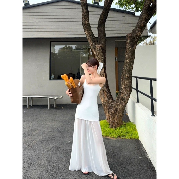 Design Mesh Stitching Suspenders Dress