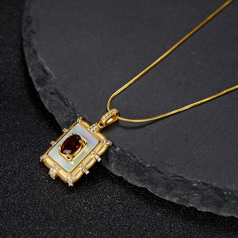 925 Sterling Silver Inlaid Natural Gemstone Necklace