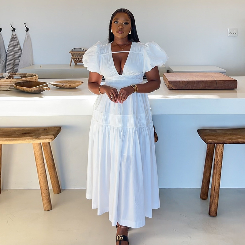 Product information: Color: White Waist type: high waist Sleeve type: puff sleeve Main fabric composition: Polyester (polyester fiber) Size: S,M,L,XL,2XL