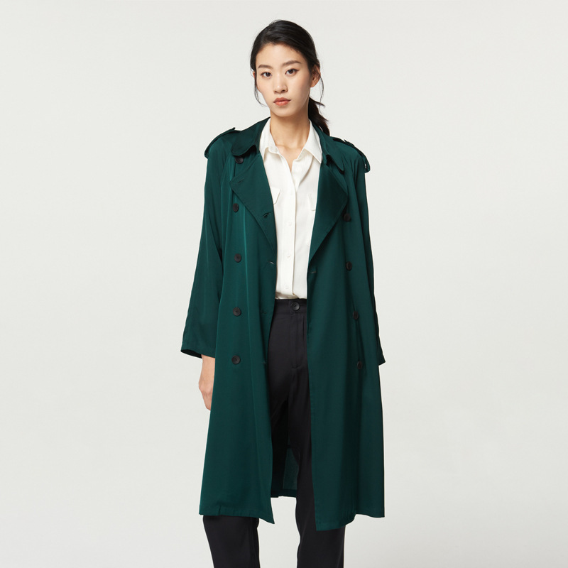 Women's Mid-length Double Silk Trench Coat