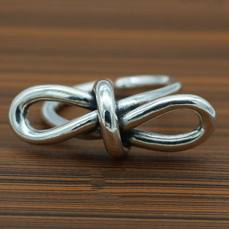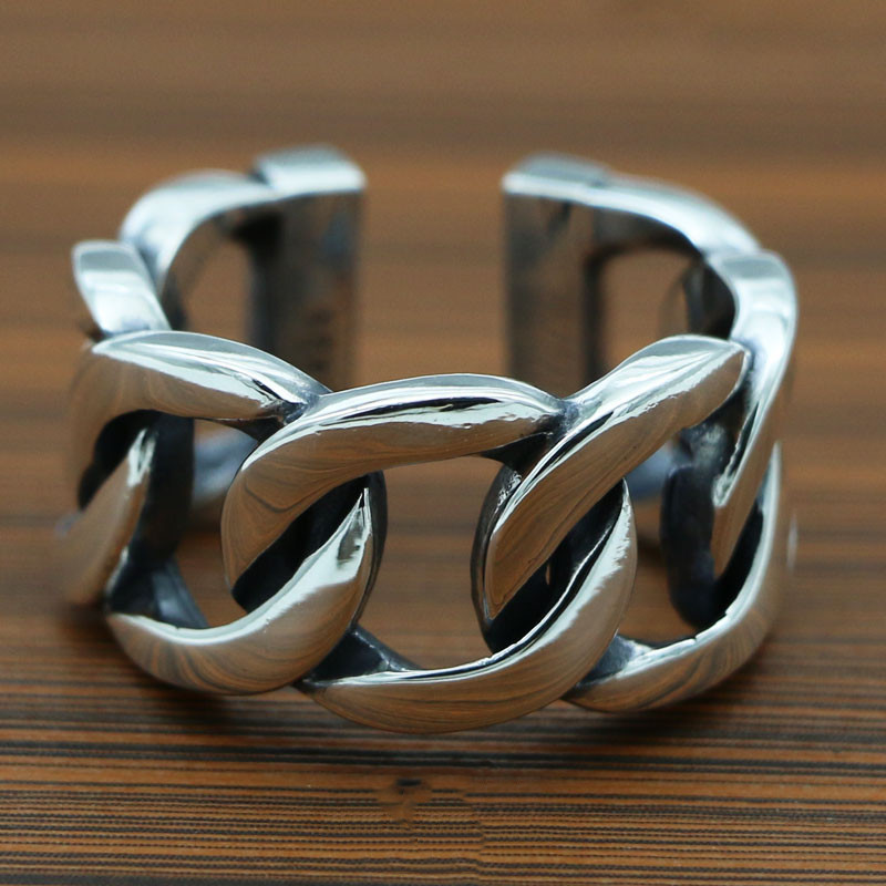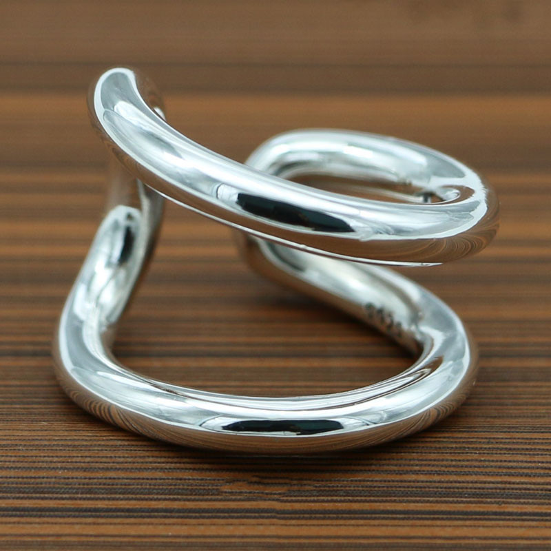 S925 Sterling Silver Vintage Thai Silver Personalized Creative Braided Chain Ring