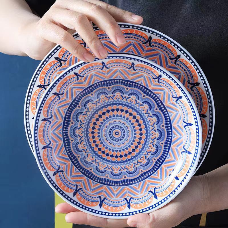 Product Category: DiscMaterial: PorcelainStyle: creativeShape: roundSurface technology: underglaze colorColor: Posey 4, Forest 4, Posey 2 + Forest 2Specifications: 4 8-inch ceramic plates