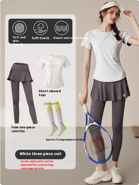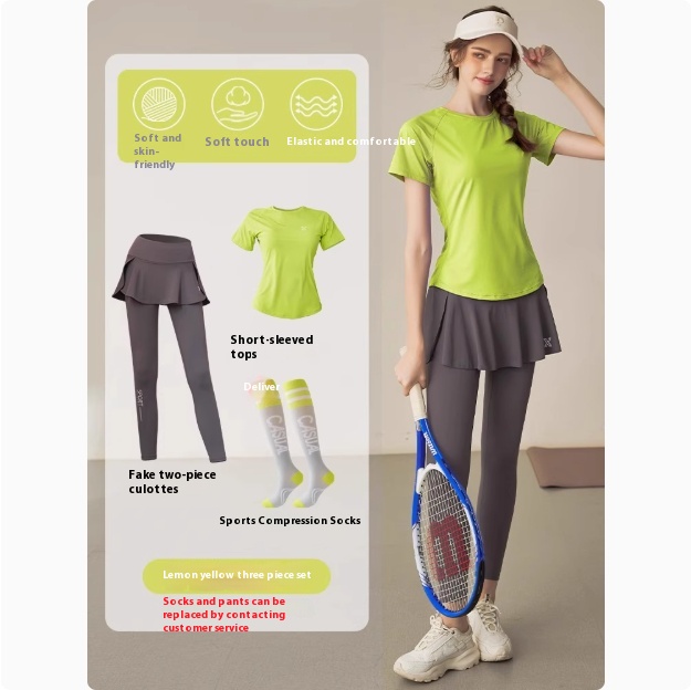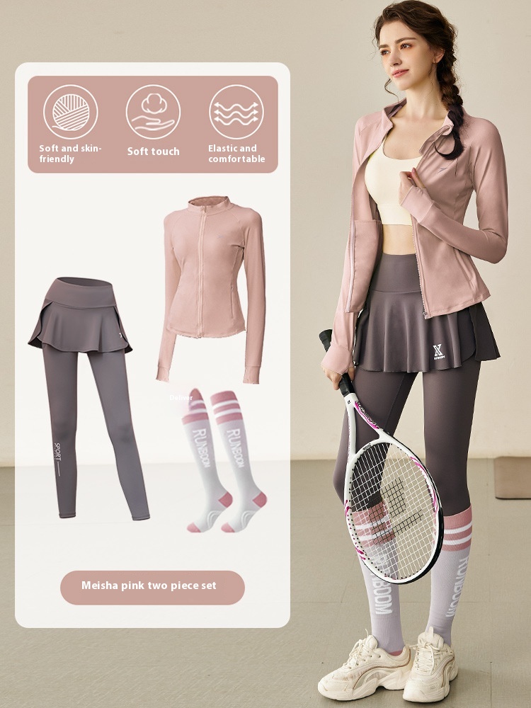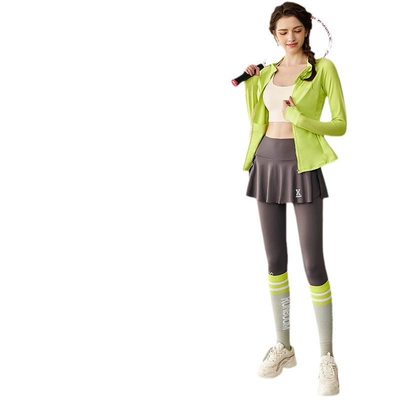 Color: lemon yellow, pink, black, white, [two-piece set] lemon yellow coat gray suit skirt (workout socks),[two-piece set] pink coat gray suit skirt (workout socks),[Two-piece suit] pink coat black suit skirt (free fitness leggings),[two-piece suit] black clothes black suit skirt [two-piece suit] white clothes gray skirt