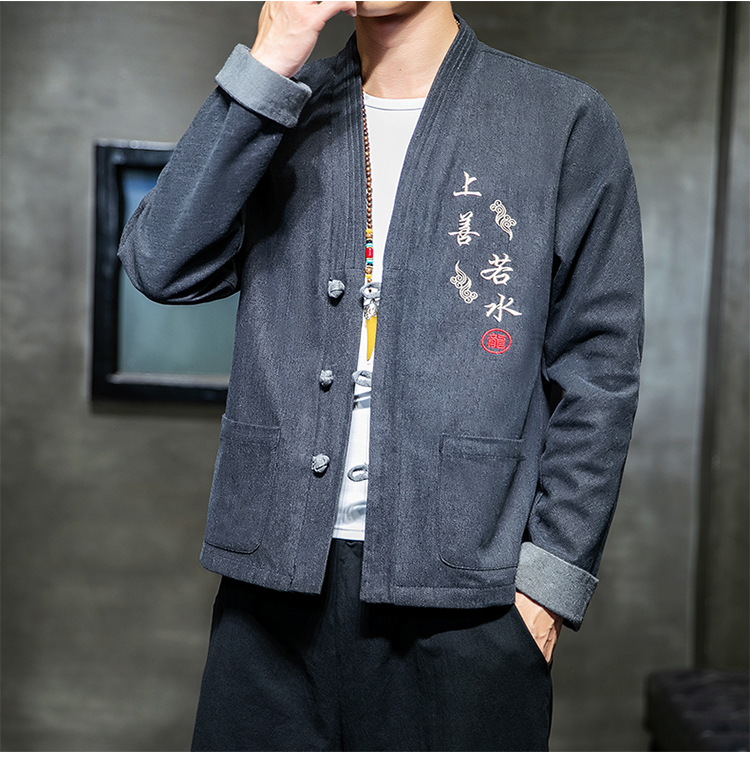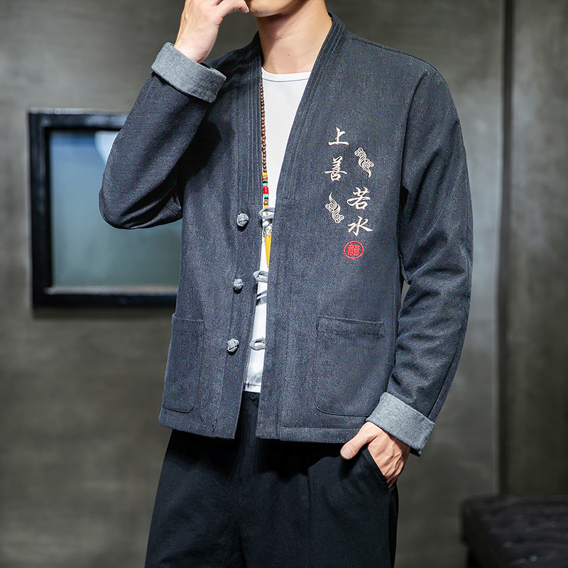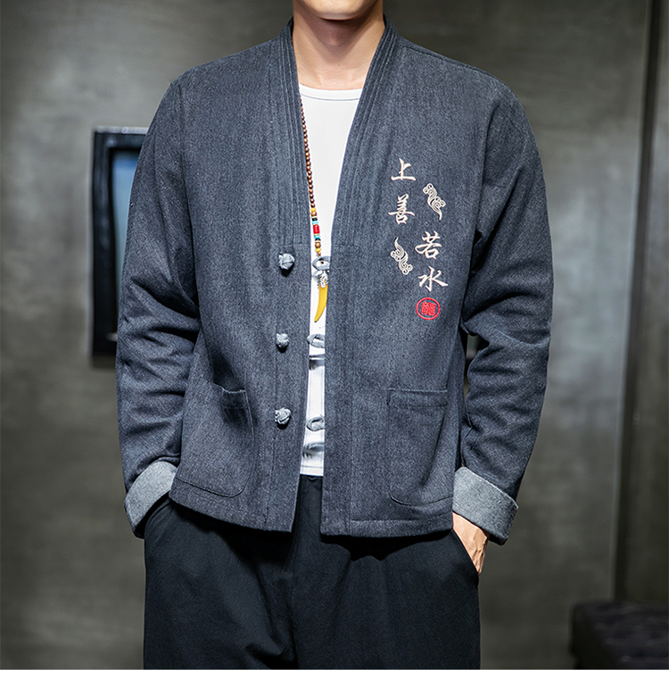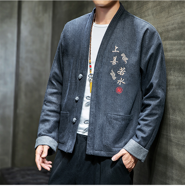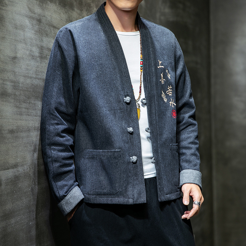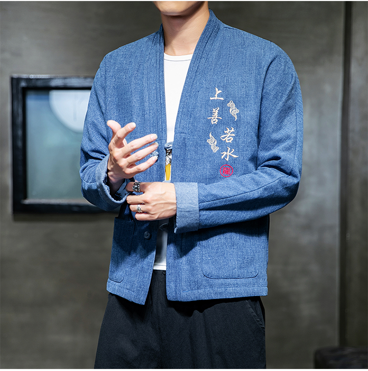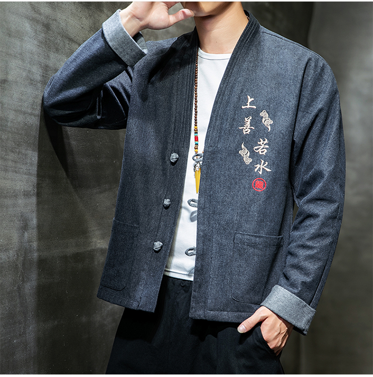 Chinese wind buckle casual denim jacket