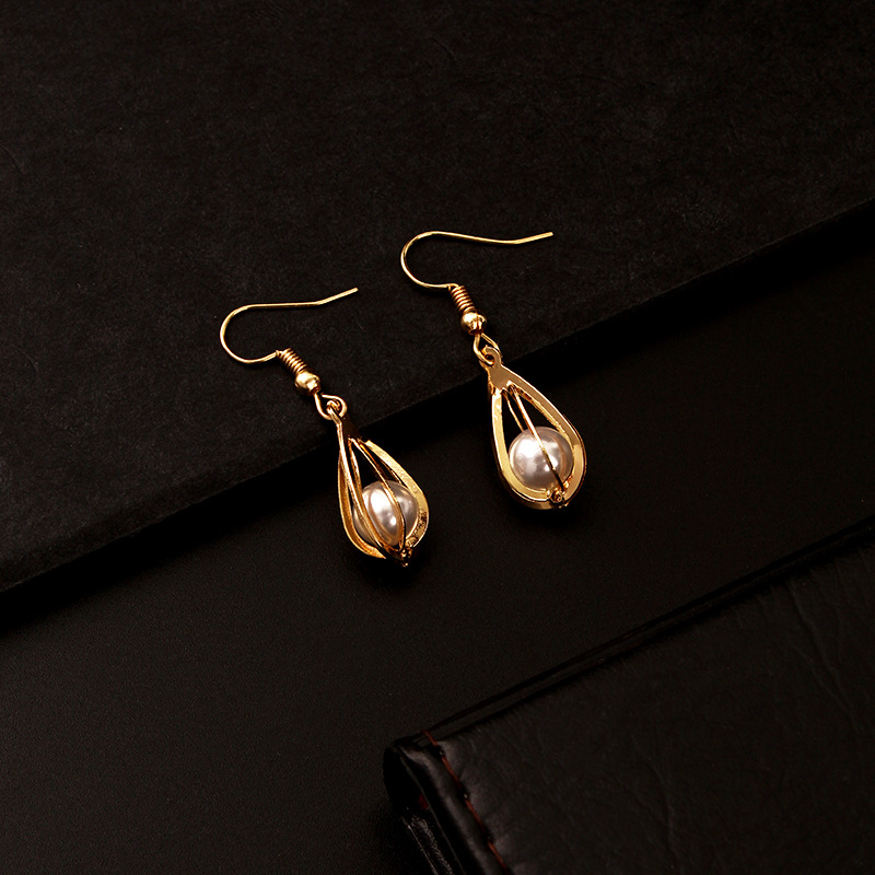 Drop-Shaped Pearl Long Gold-Covered Vintage Tassel Gold Earrings