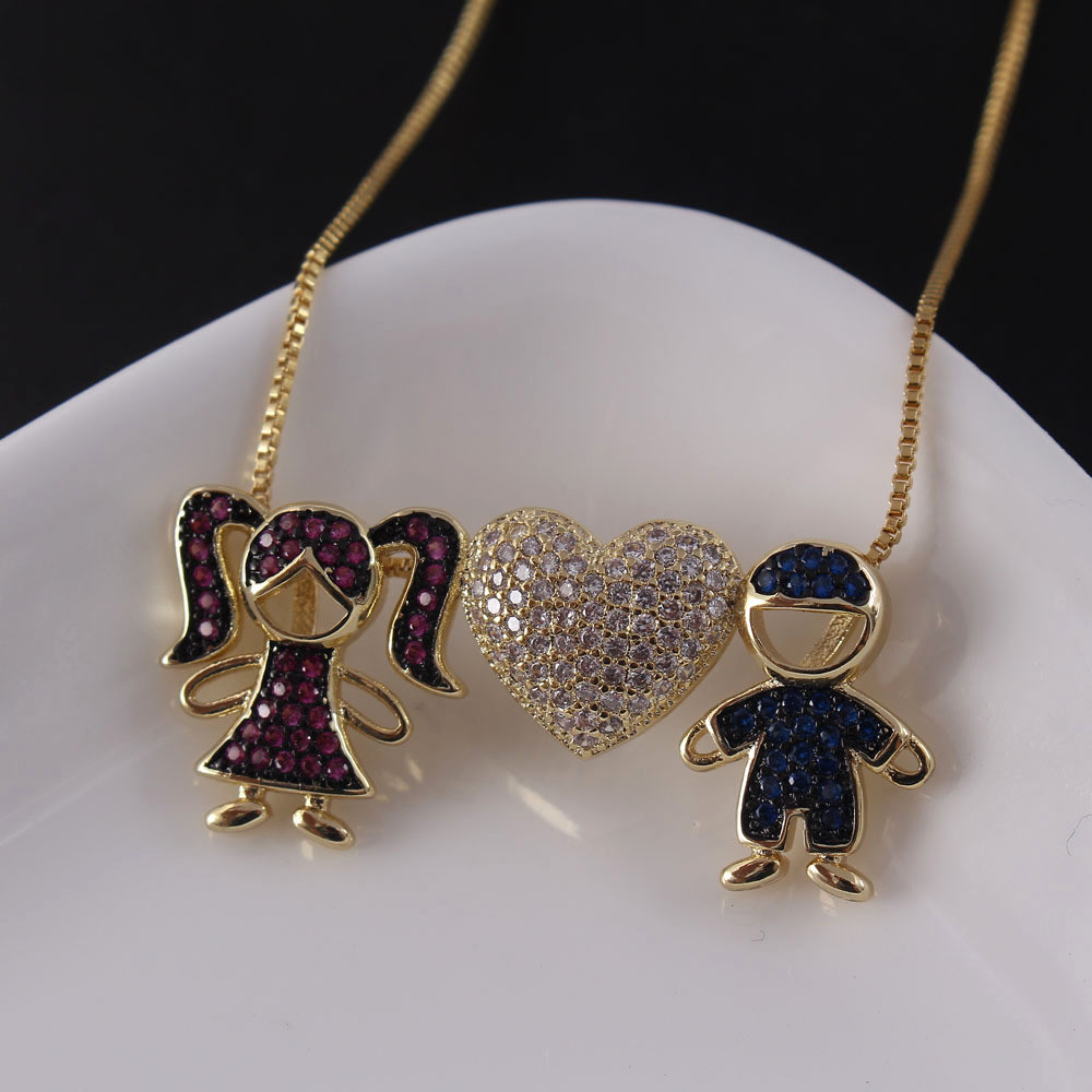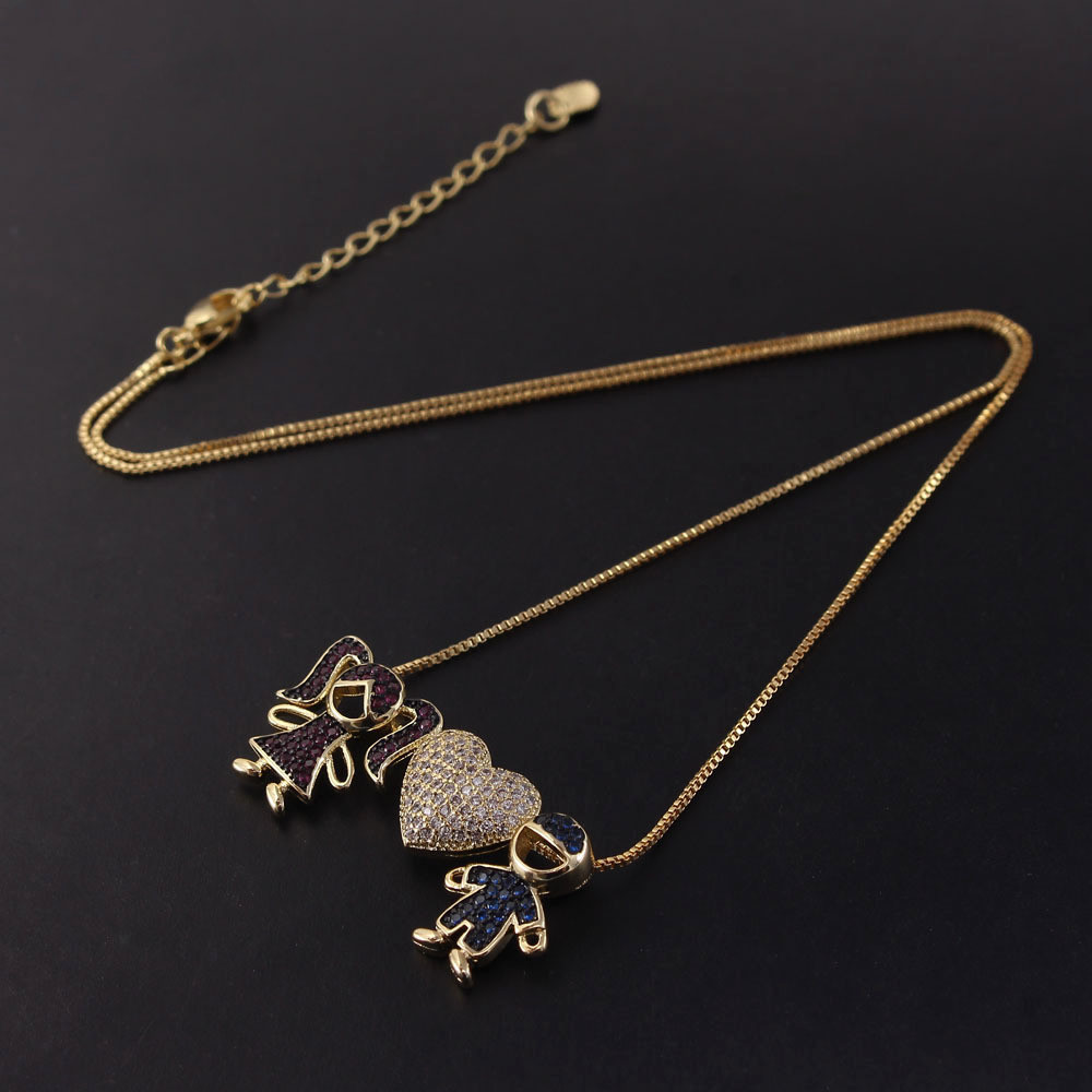 Style: European and AmericanMaterial: copper, zirconProcessing technology: diamondType: NecklaceStyle: Women'sShape: Heart-shaped