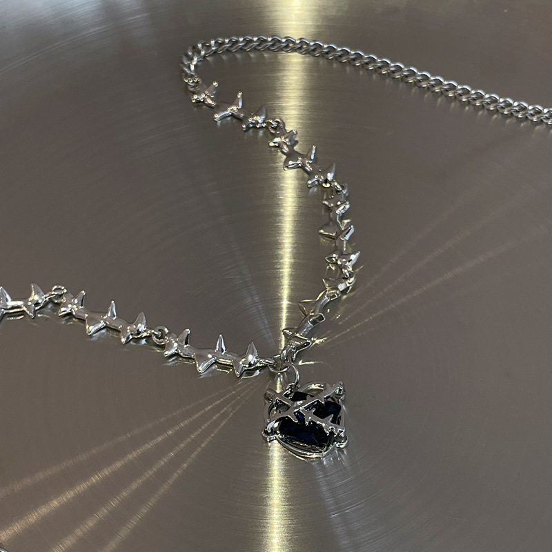 Color: dark blue love heart thorns necklace