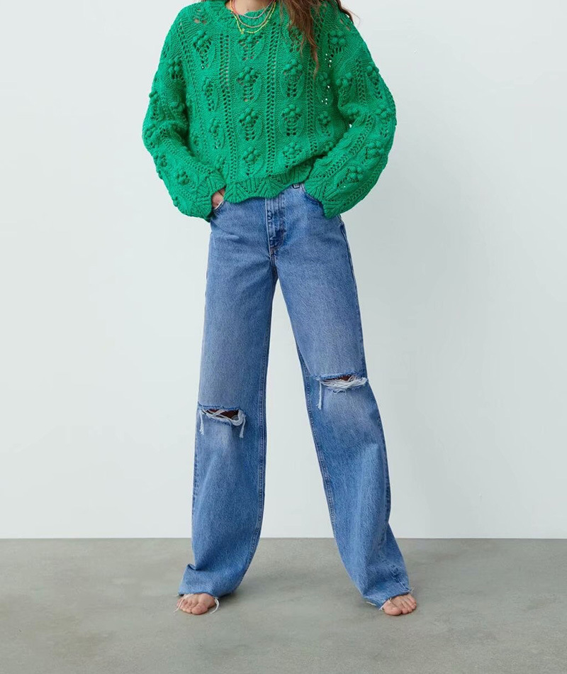 Color: 5689 green ball-shaped knitted sweater, 5731 rose ball diamond sweater
