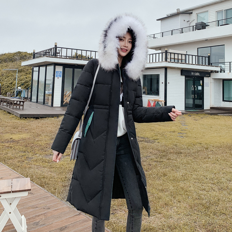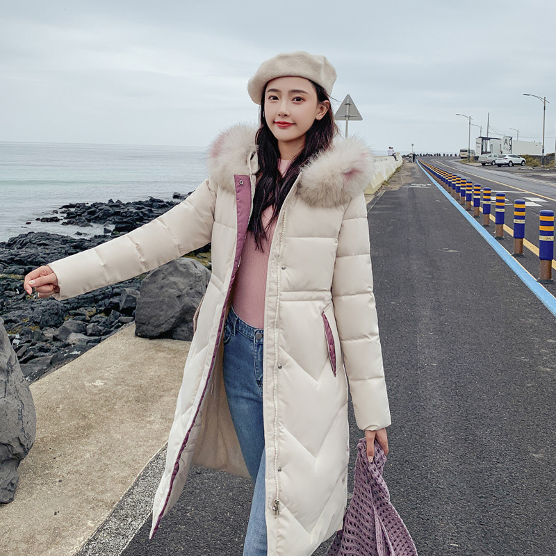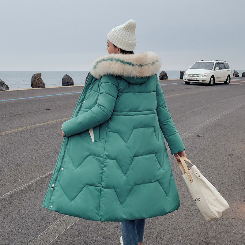 Cotton-padded jacket women's autumn and winter 2019 new Korean waist thickened mid-length down padded jacket women fashion big fur collar jacket