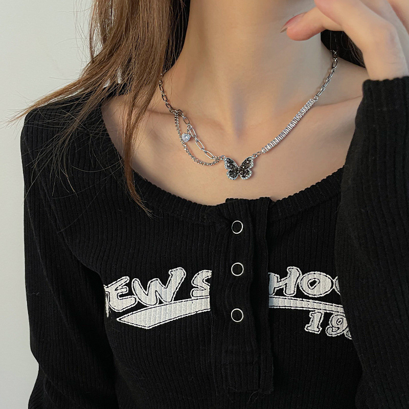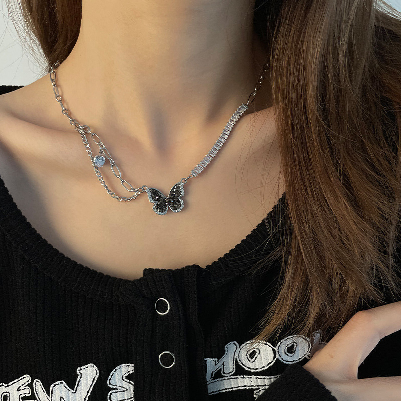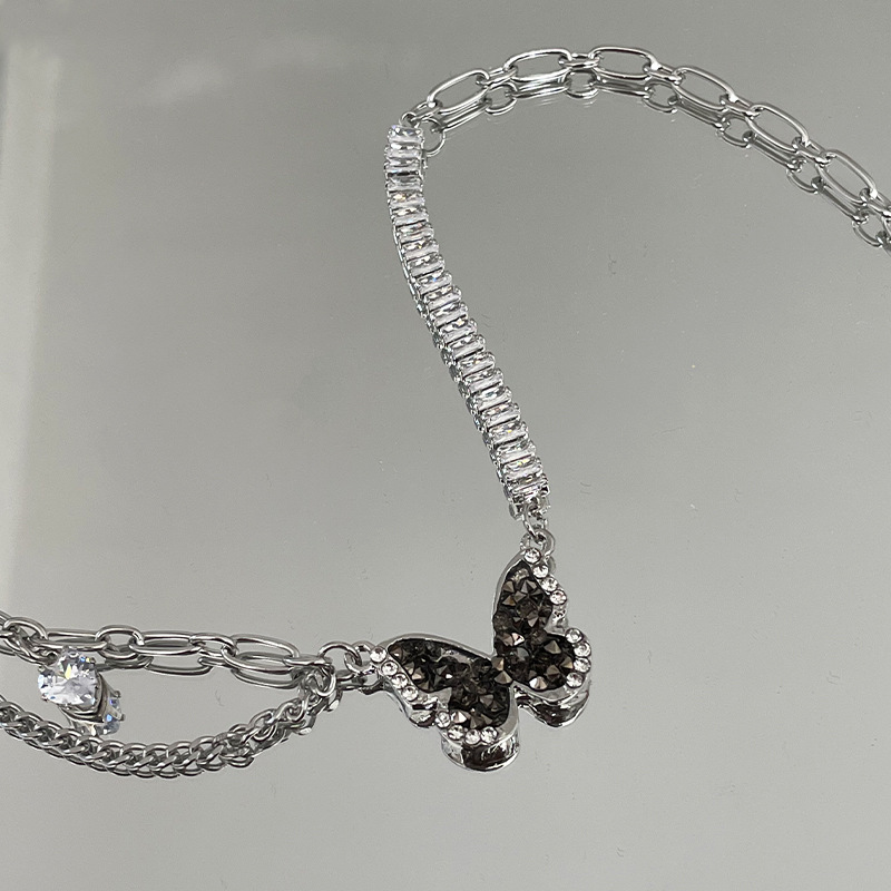 Product information:Color: Gun black butterfly single row diamond necklaceApplicable people: womenPendant material: AlloyChain style: O-shaped chainMaterial: titanium steelModeling: InsectPopular elements: ButterflyStyle: sweet and cool