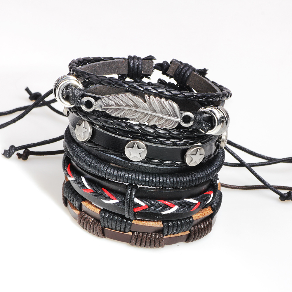 Style: European and AmericanMaterial: LeatherProcessing Technology: WeavingType: BraceletStyle: Men'sShape: StarHealth Function: No Health Function