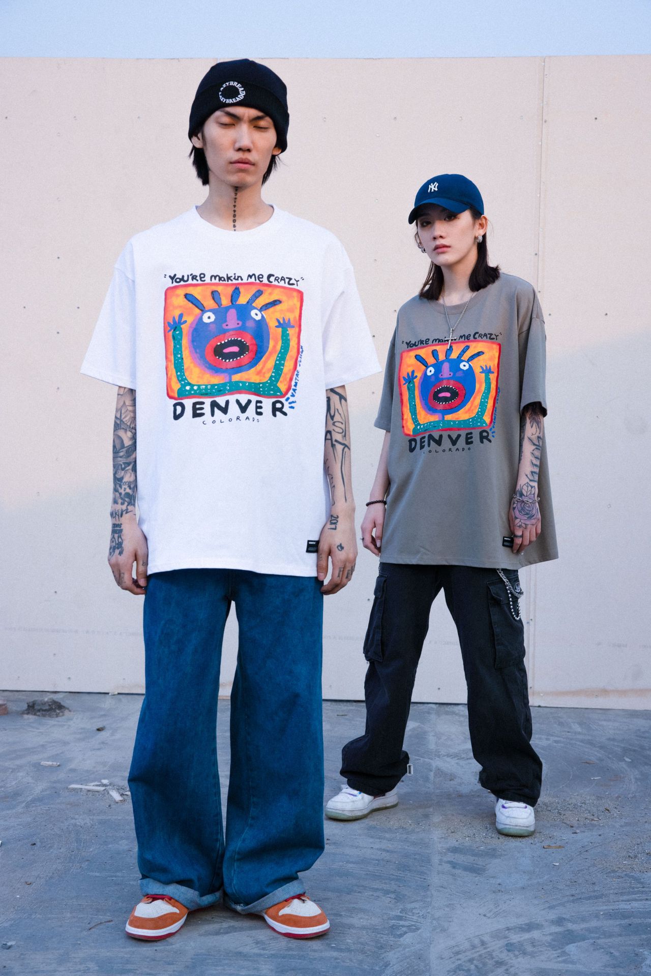 Pattern Printed Street Men And Women Loose Short Sleeve