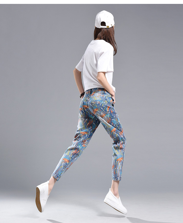 High waist painted printed harem pants