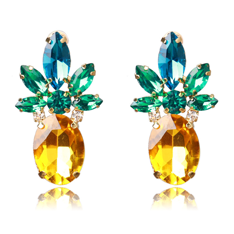 Style cartoon material glass/glazed Type earrings style women's style fruit Packaging Individual packaging Applicable gifts occasions Employee benefits, wedding, travel commemoration Inlay material Alloy inlaid artificial gemstone / semi-precious stone Color pineapple earrings 1