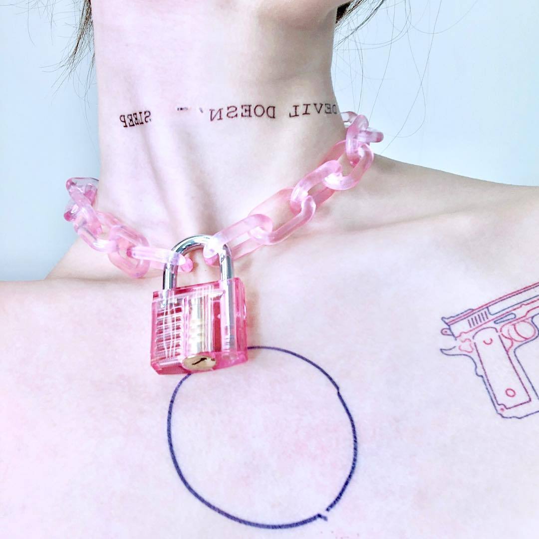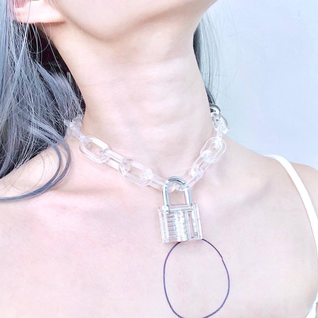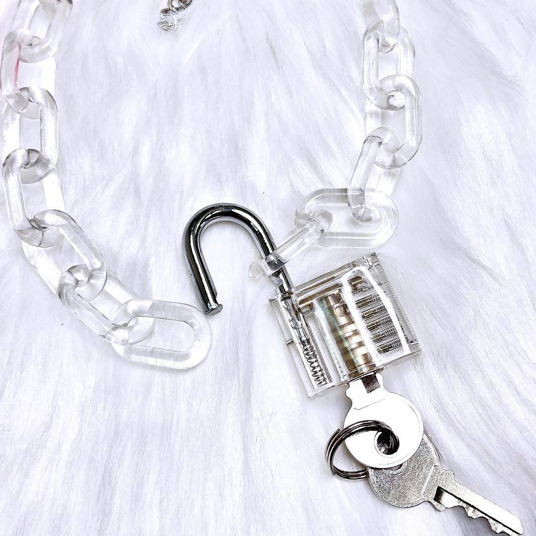 Material: AlloyType: pendant, pendantStyle: UnisexWhether to bring a pendant: YesColor: pink lock necklace, transparent lock necklace