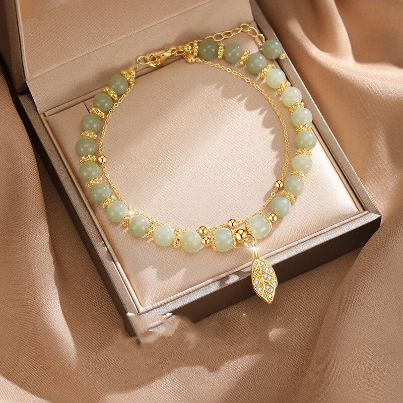 Product information:Treatment Process: Electroplating Color: boutique Hetian jade Premium Edition, Hetian jade Universal Edition bracelet Material: Silver Shape: Leaves Size: 17cm+ 6cm