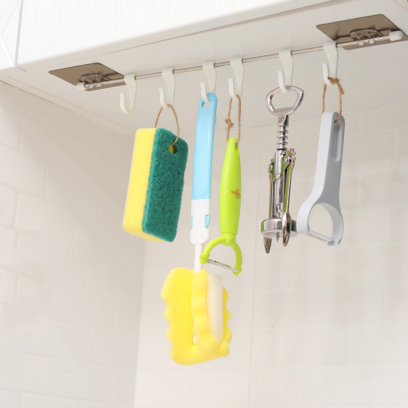 Product Name: No trace free punch hookSize: pole length 38.5cm, length and width 7cmTotal length: 42cmProduct material: PP + stainless steelScope of application: bathroom, bedroom, cabinet