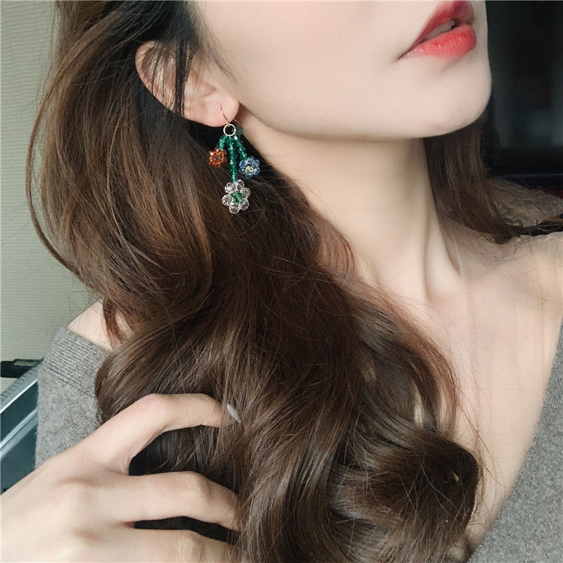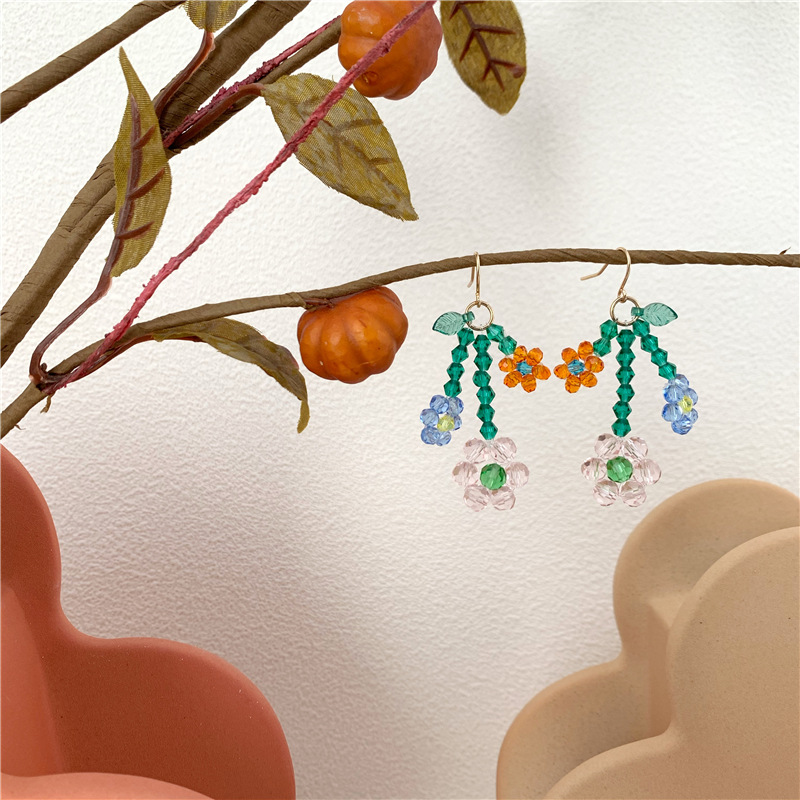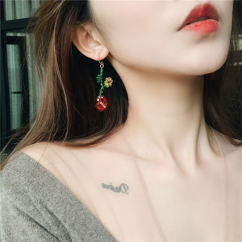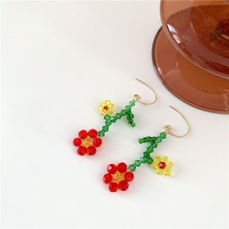 Color: No. 1, red flower, ear hook, No. 2, transparent flower, ear hook, No. 3, red flower, screw ear clip, No. 4, transparent flower, screw ear clip