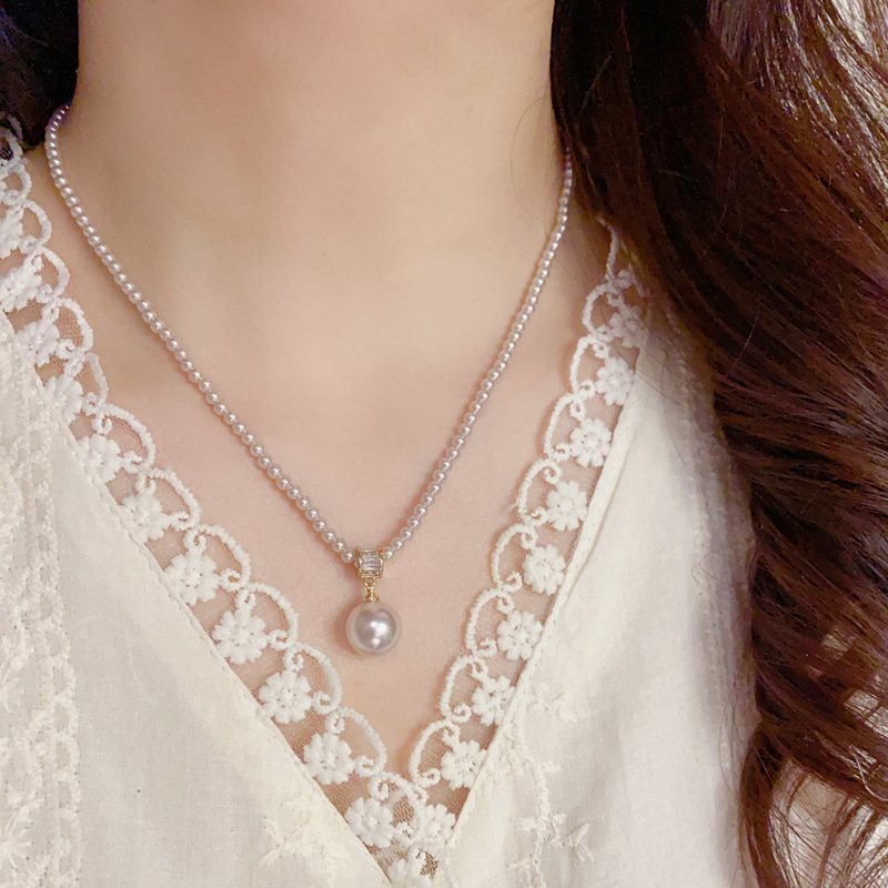 Color: zircon pearl pendant necklace (thick gold plated)