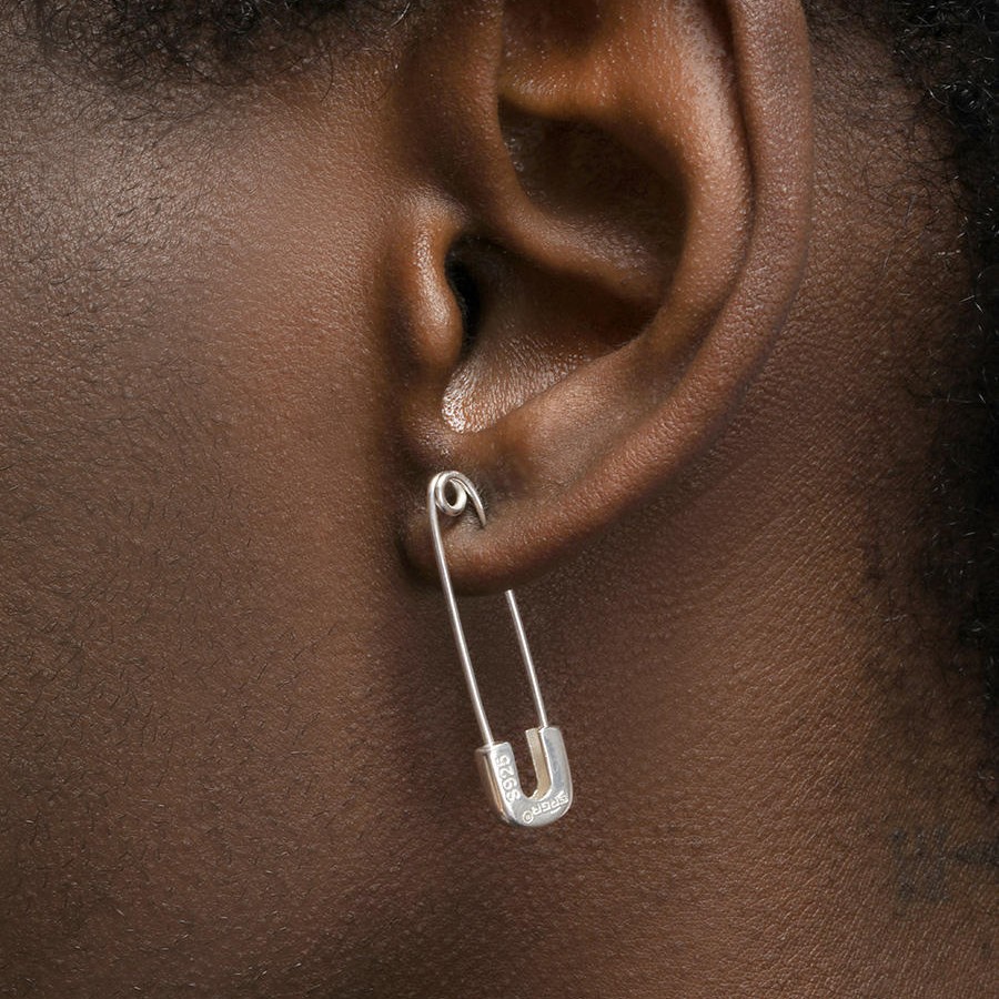 Sterling Silver Pin Earrings Men's Hip Hop