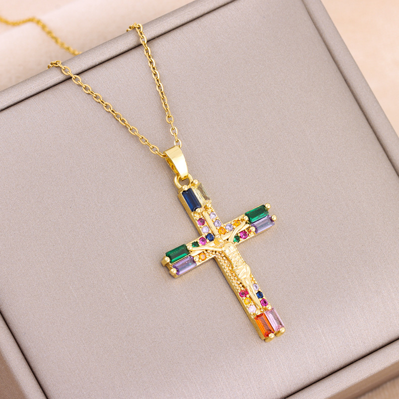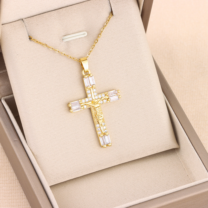 Product information:Color: 8036 color zirconium cross, 8036 white zirconium crossChain style: O-shaped chainMaterial: Titanium steelPopular elements: CrossStyle: BohemianLength: 40+5cm