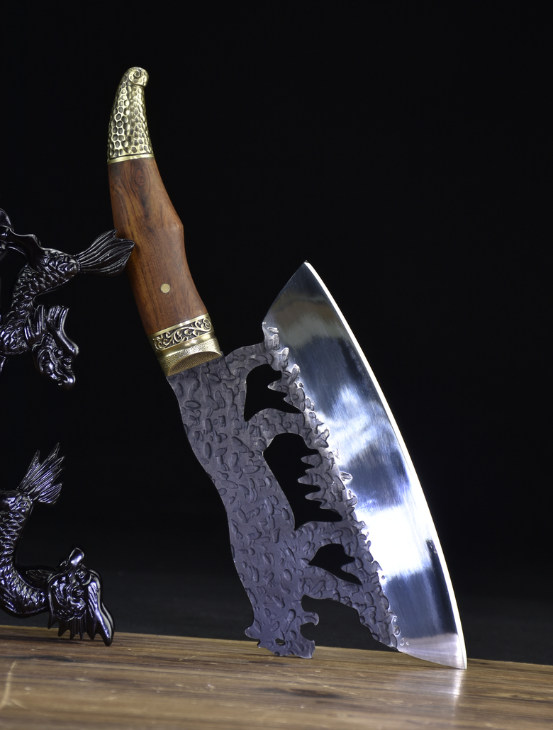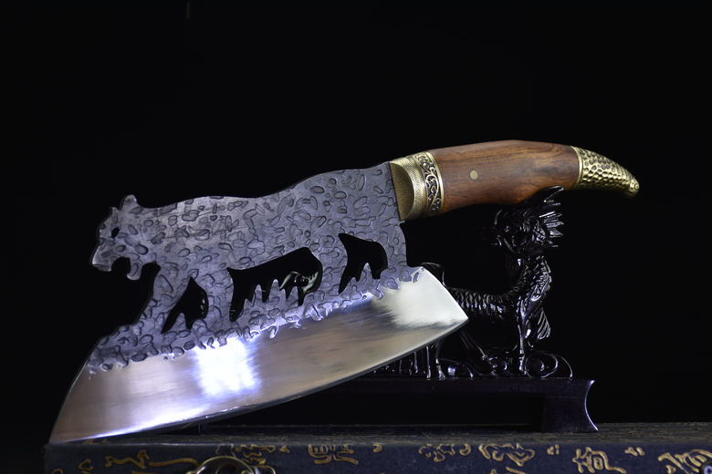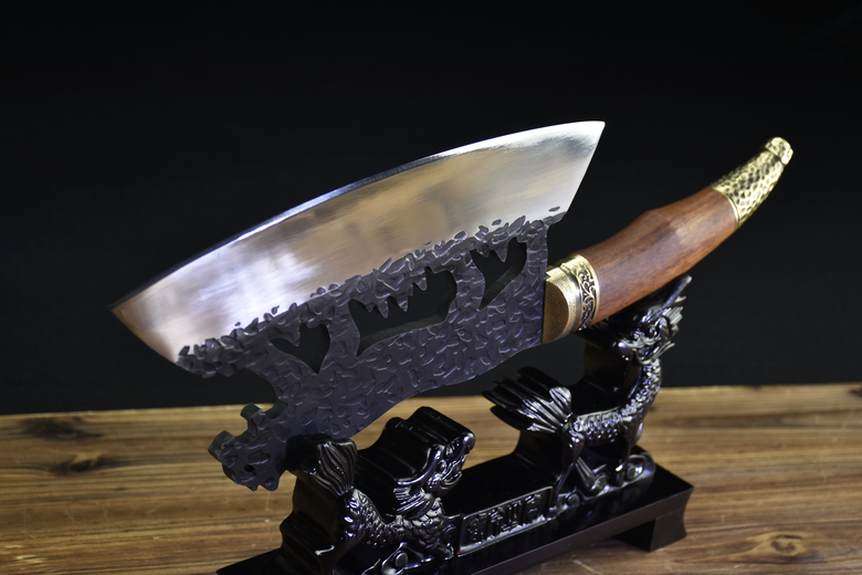 Full length: 36cm Blade length: 23cmHandle length: 15.5cm Blade width: about 11cmThickness: 0.6cm Blade material: high manganese steelHandle material: rosewood, fittings: brass