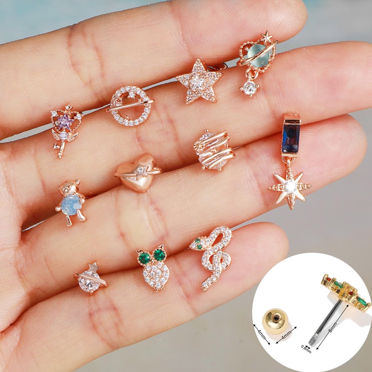 Product information:Processing: inlaid zircon Shape: Geometry Popular elements: Owl, snake, bear Style: Europe and America