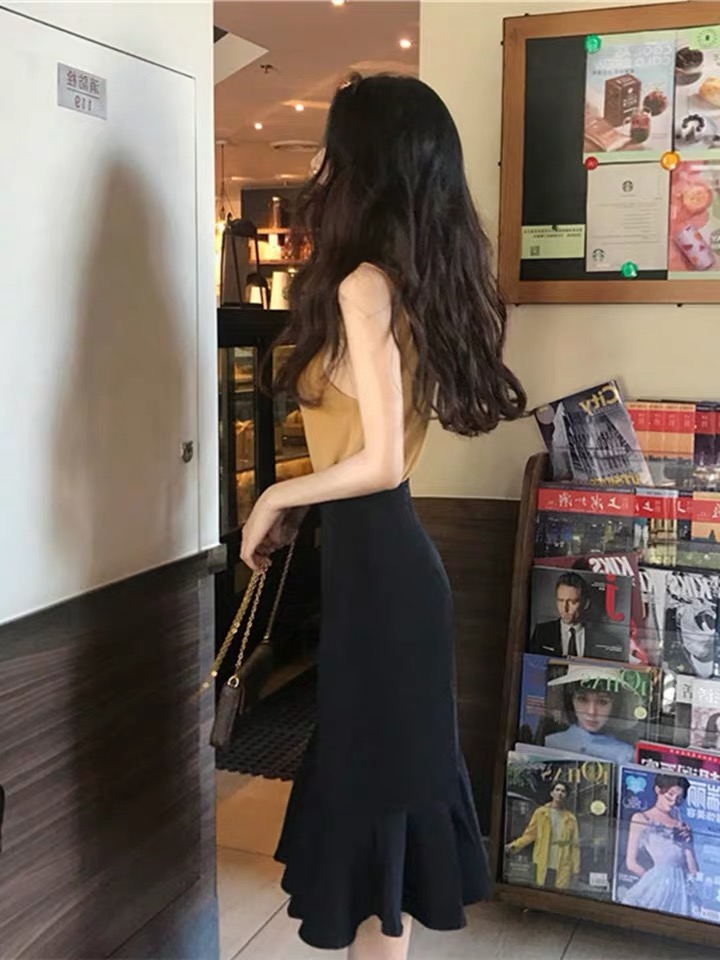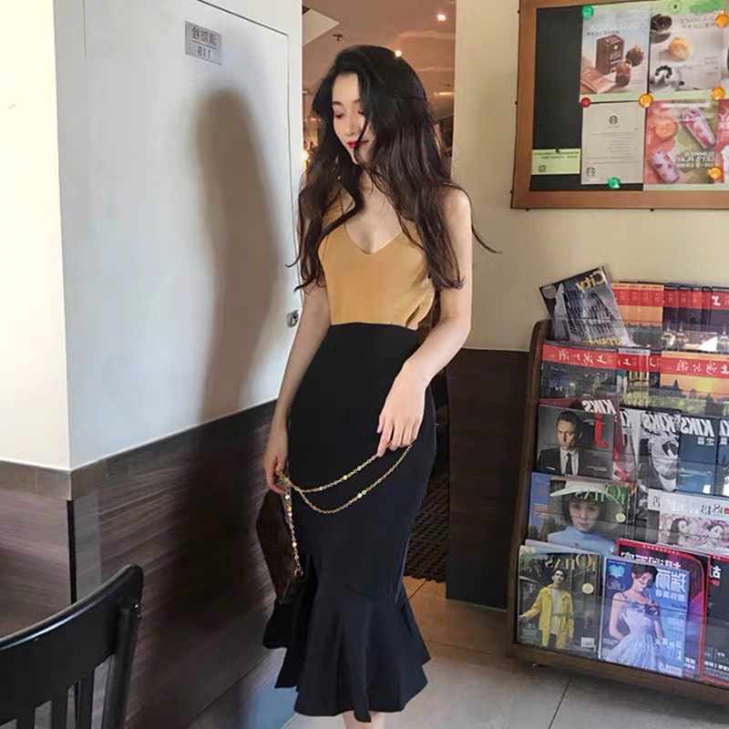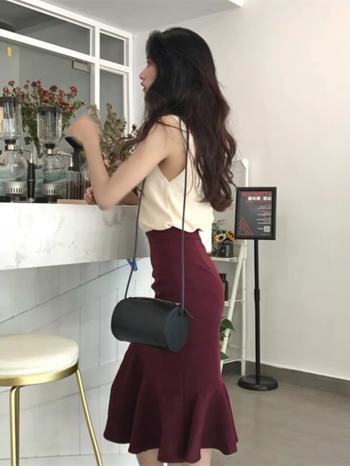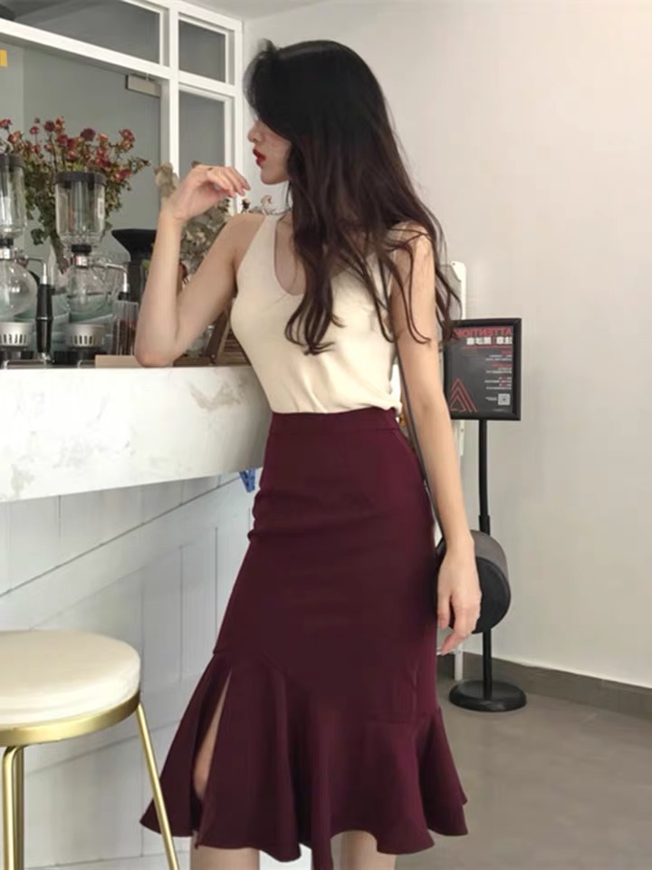 Product information:Applicable age: 18-25 years oldColor classification: Apricot + wine red skirt, light coffee + black skirtSize Information:Size: S M L XLPacking list:Ladies top + skirt*1 set
