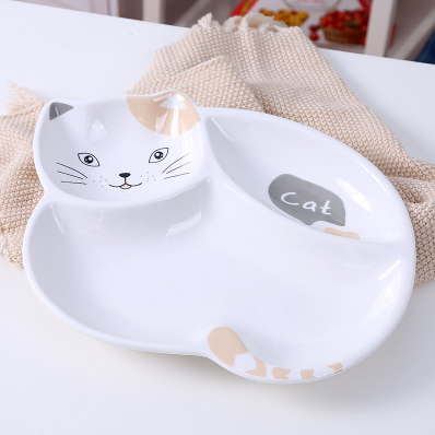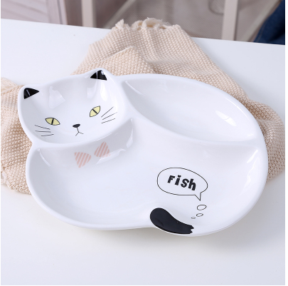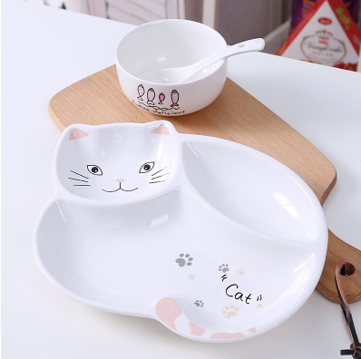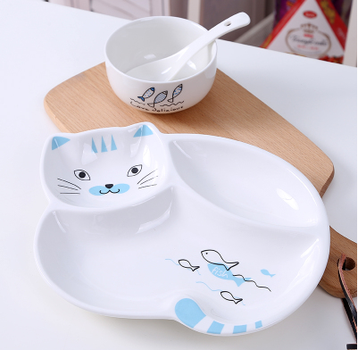 Creative cat children's ceramic plate cute cartoon grid plate baby rice tableware home breakfast plate