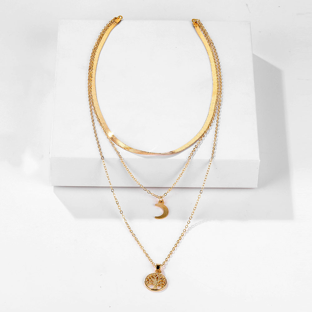 Nightclub exaggerated alloy multilayer necklace necklace fashion simple geometric tree of life moon pendant necklace women