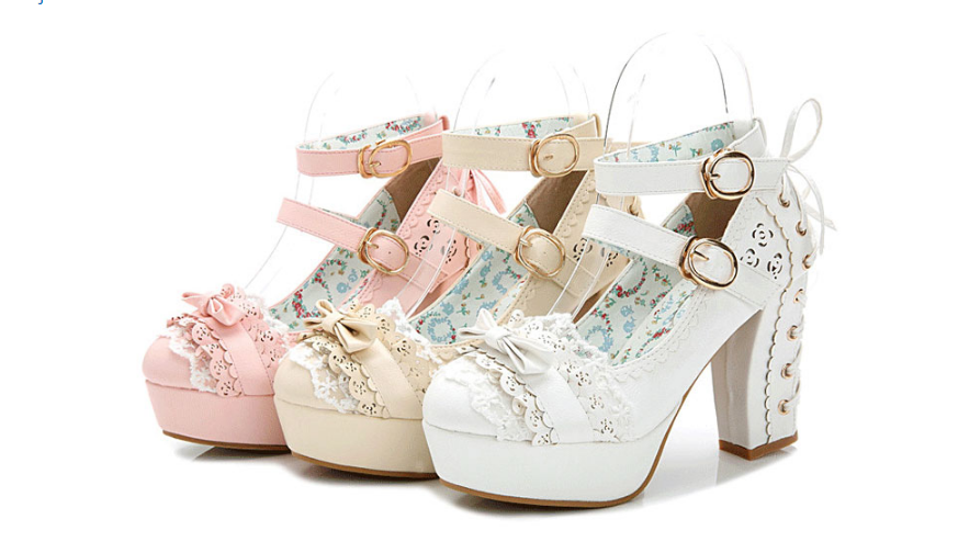 Sweet Princess Japanese High Heels Autumn Mary Jane Shoes Waterproof Lace Bow