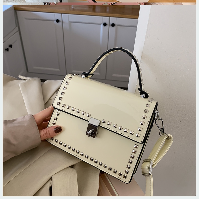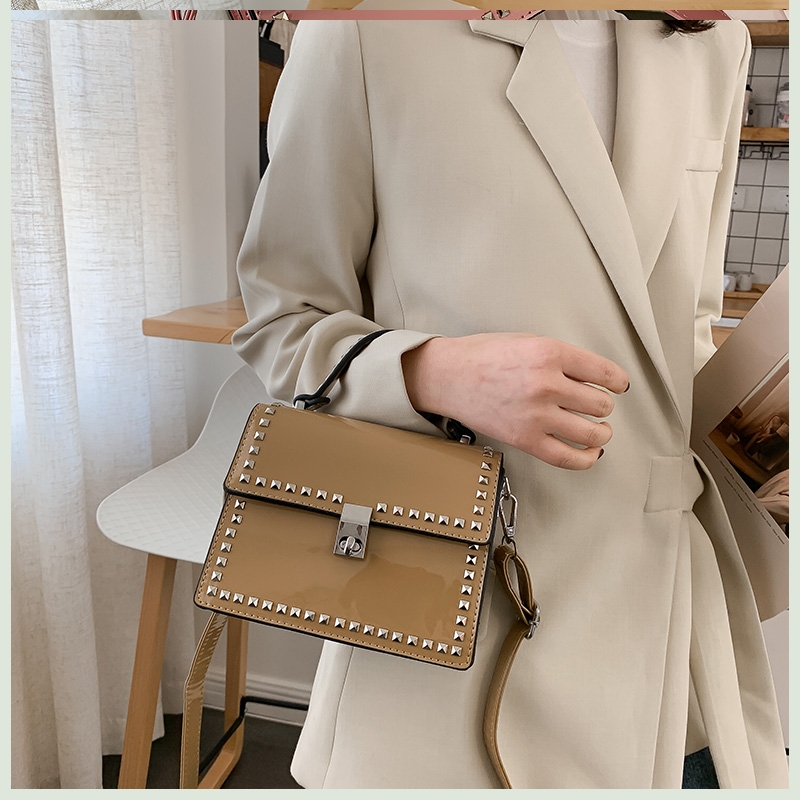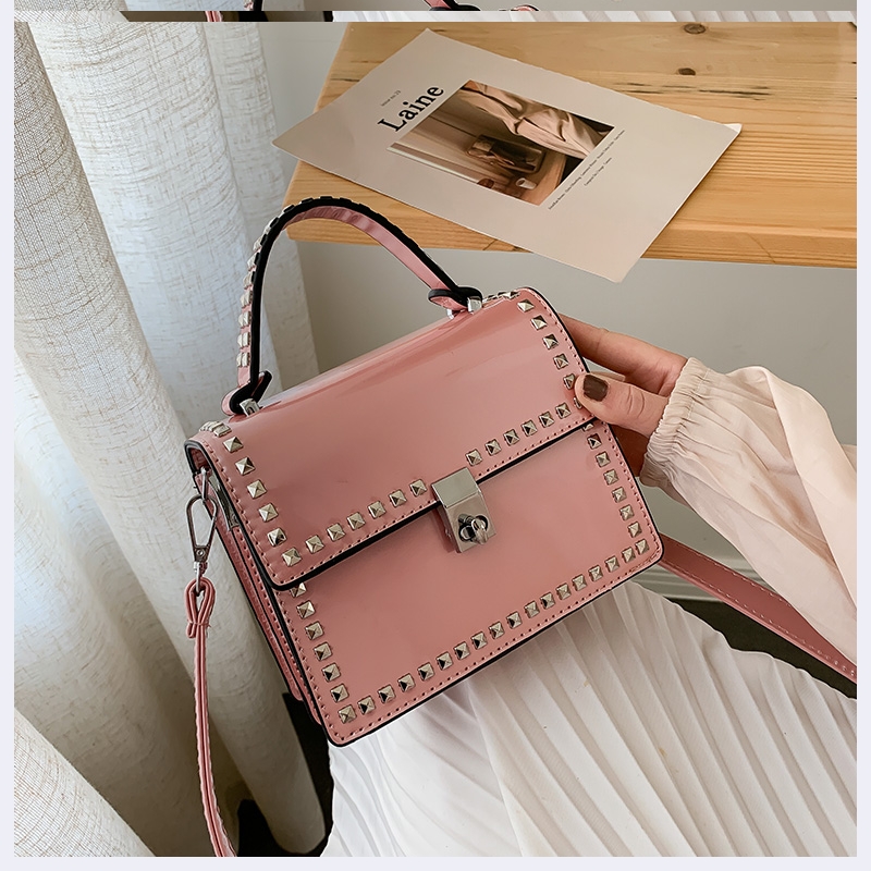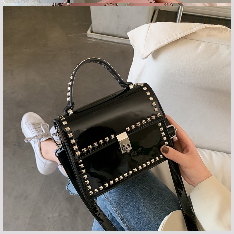 Texture: PU materialClosure mode: latchPattern: solid colorShape: vertical squareColor classification: black, white, blue, pink khakiLining material: polyesterProcess: bright surface