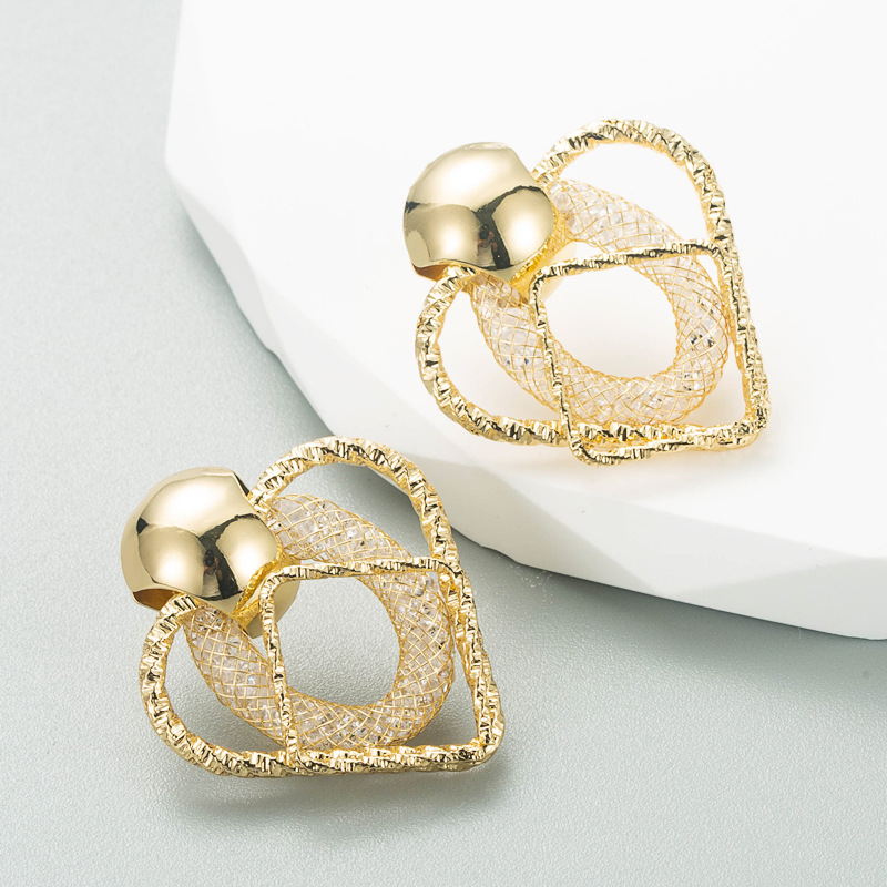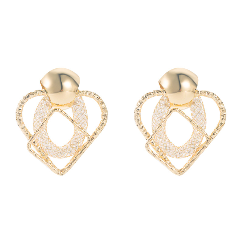 Product Information:Material: AlloyShape: Geometric typeTreatment process: diamond insertColor: Gold, silverPopular element: Hearts/heartsStyle: European and AmericanSize: 3.5cm*3.1cmPacking list:Earrings X1Pair