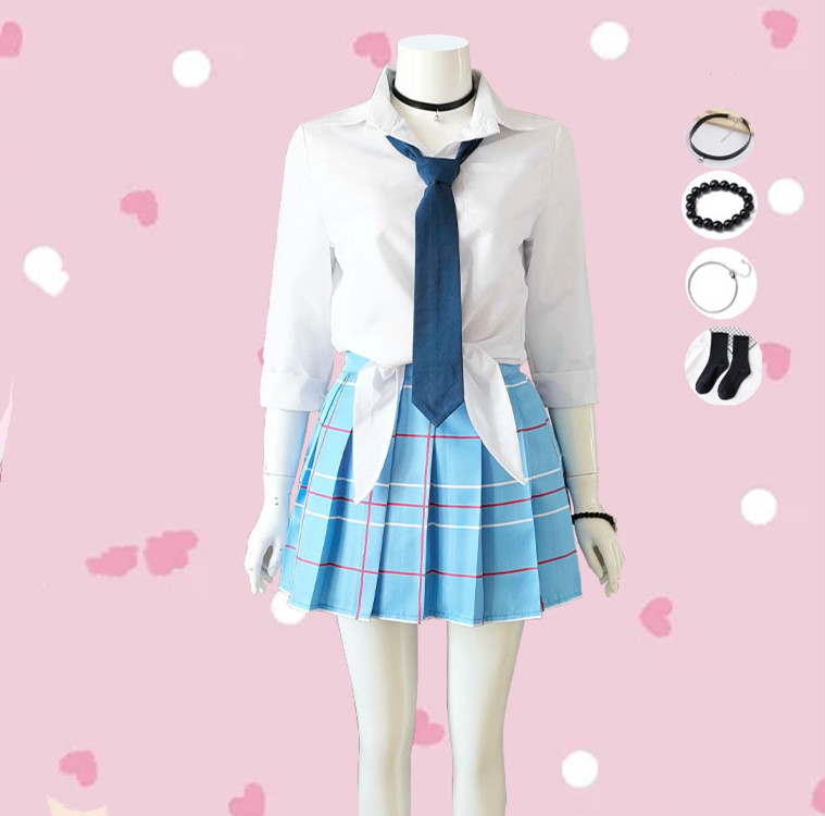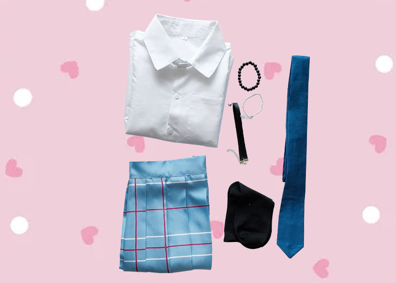 Shirt*1+Skirt*1+Tie*1+Leather Necklace*1+Bracelet*1
