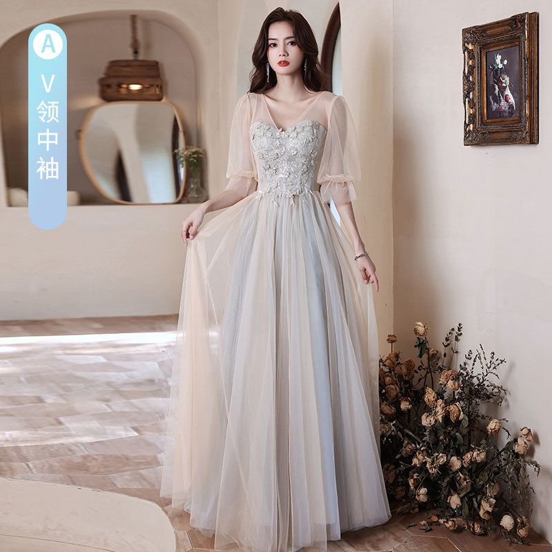 Color: mid-length V-neck half sleeves (A), mid-length square collar puff sleeve (B), mid-length long style petals off-shoulder (C), mid-long tie mid-sleeve (D), long v-neck half sleeves (A), long square collar puff sleeve (B), long style petals off-shoulder (C), long tie half sleeve (D)