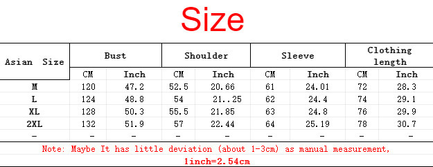 Note:1. Asian sizes are 1 to 2 sizes smaller than European and American people. Choose the larger size if your size between two sizes. Please allow 2-3cm differences due to manual measurement.