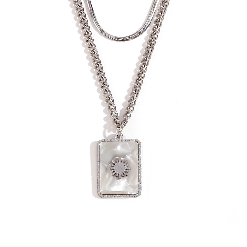 Color: double layer blade chain twisted chain square shell small Sun Necklace-gold, double layer blade chain twisted chain square shell small Sun Necklace-steel color